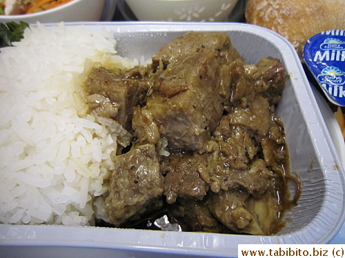 Cathay Pacific: Sydney to Hong Kong lunch: braised beef was surprisingly yummy